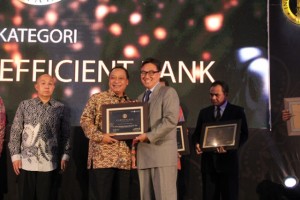 Direktur Utama PT Bank Tabungan Negara (Persero) Tbk Maryono menerima penghargaan The Most Efficient Bank yang diserahkan Kepala Eksekutif Lembaga Penjamin Simpanan (LPS) Fauzi Ichsan dalam acara Indonesia Banking Award (IBA) 2017 di Jakarta, Rabu 13 September 2017.
