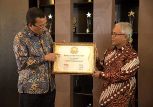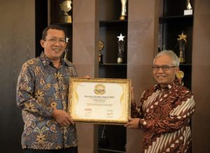 Direktur Utama PT Bank Tabungan Negara (Persero) Tbk Haru Koesmahargyo (kiri) dan Direktur Distribution & Retail Funding Bank BTN, Jasmin (kanan) menunjukkan piagam Penghargaan Best Priority Banking di ajang Service and Quality Award 2021 di Jakarta, Rabu, 6 Oktober 2021. Penghargaan tersebut merupakan hasil dari kinerja positif layanan wealth management Bank BTN melalui BTN Prioritas. Layanan BTN Prioritas unggul falM menghadirkan Priority Banking Manager dan Priority Banking Officer dan telah tersertifikasi untuk melayani nasabah prioritas.