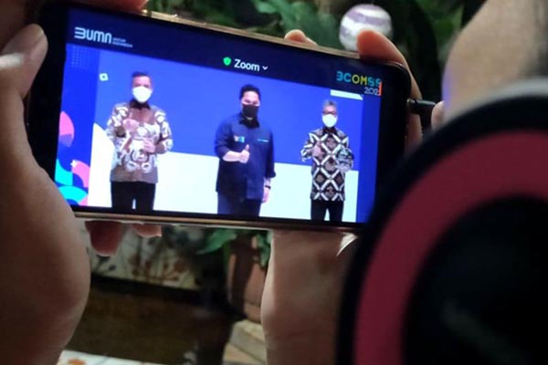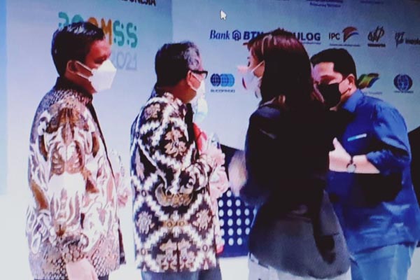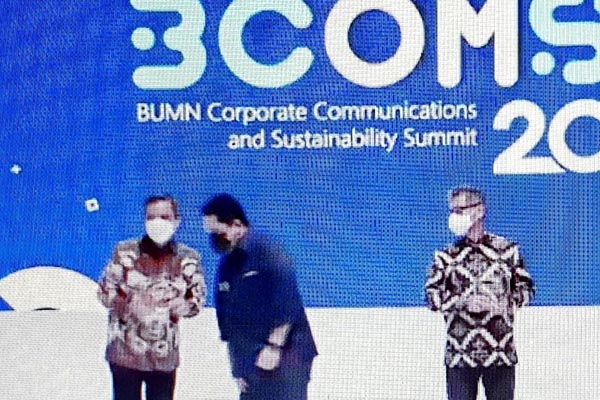 Plt Direktur Utama PT Bank Tabungan Negara (Persero) Tbk. Nixon LP Napitupulu (kiri) mengacungkan jempol usai menerima penghargaan dari Menteri Badan Usaha Milik Negara (BUMN) Erick Thohir di acara BUMN Corporate Communications and Sustainability Summit 2021 di Jakarta, Jumat malam, 29 Januari 2021. Bank BTN meraih penghargaan Social Media Award atas program kampanye media sosial perseroan bertajuk Hidup Ga Cuma Tentang Hari Ini #hgtchi. Penghargaan tersebut merupakan apresiasi yang diberikan kepada perseroan yang dinilai telah melakukan komunikasi tentang perusahaan yang baik sehingga masyarakat umum terkomunikasi dengan baik atas kegiatan yang dilakukan oleh perusahaan BUMN.