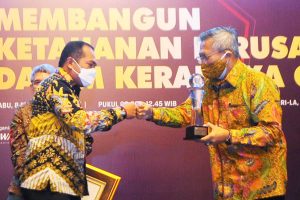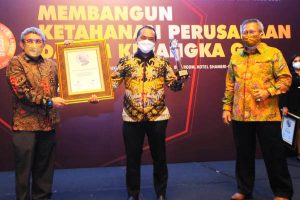 Direktur Compliance and Legal PT Bank Tabungan Negara (Persero) Tbk. Eko Waluyo (tengah) menerima penghargaan Indonesia Most Trusted Company pada ajang Indonesia Good Corporate Governance Award 2021 di Jakarta, Rabu 8 Desember 2021. Dalam ajang tersebut, perseroan meraih kategori perusahaan paling terpercaya (The Most Trusted Companies). Bank BTN sebagai perusahaan terbuka terus berupaya memaksimalkan penerapan Good Corporate Governance (GCG) untuk mendukung pertumbuhan bisnis perseroan yang berkelanjutan sekaligus menopang penyediaan perumahan bagi masyarakat Indonesia.