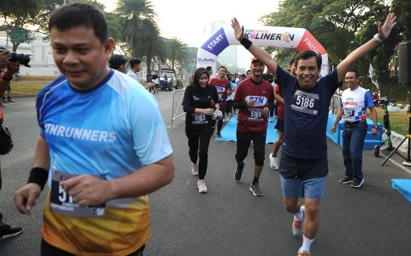 Direktur PT Bank Tabungan Negara (Persero) Tbk Nixon LP Napitupulu didampingi Kepala divisi ritel dan funding BTN Ferry Sipahutar, Corporate Secretary BTN Achmad Chaerul melepas ratusan peserta BTN runner di halaman kantor cabang BTN Bintaro, Minggu (15/9). BTN Runner merupakan komunitas penggemar olah raga lari yang menjadi ruang untuk pegawai BTN dalam menyalurkan sekaligus mengembangkan bakatnya. Perseroan memberikan ruang untuk pegawainya membentuk komunitas yang positif bagi pegawai yang bertujuan untuk meningkatkan semangat kerja dalam mendukung perusahaan. (*)