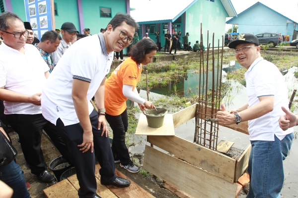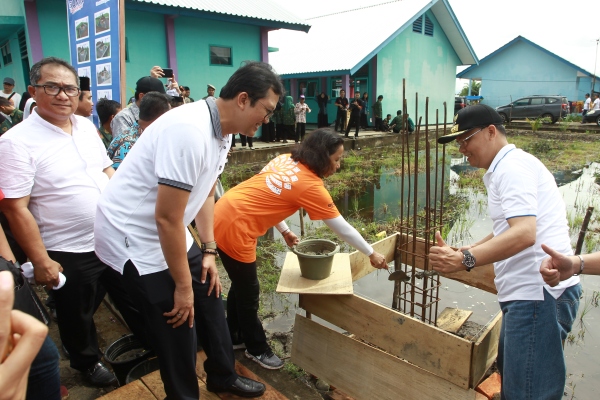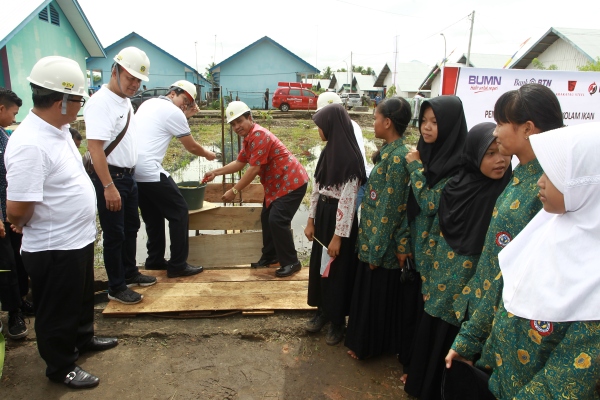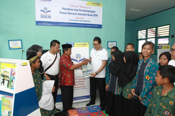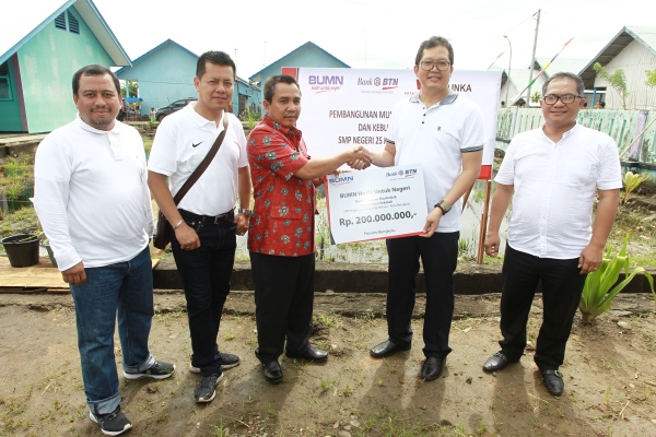 Menteri BUMN Rini Soemarno didampingi Direktur PT Bank Tabungan Negara ( Persero ) Tbk (BTN), R. Mahelan Prabantarikso dan Plt Gubernur Bengkulu Rohidin Mersyah melakukan peletakan batu pertama untuk pembangunan musholla di SMPN 25 Kampung Melayu, di Provinsi Bengkulu, Kamis (23/11). Bank BTN turut berkontribusi dalam kegiatan HUT BUMN Hadir untuk negeri di provinsi yang dijuluki bumi Raflessia dengan melakukan aktivitas CSR, selain tempat ibadah, BTN bersinergi dengan Balai Pustaka mengakomodasi taman bacaan siswa untuk melengkapi sarana dan prasaran SMPN 25 di kawasan Kampung Nelayan. (*)