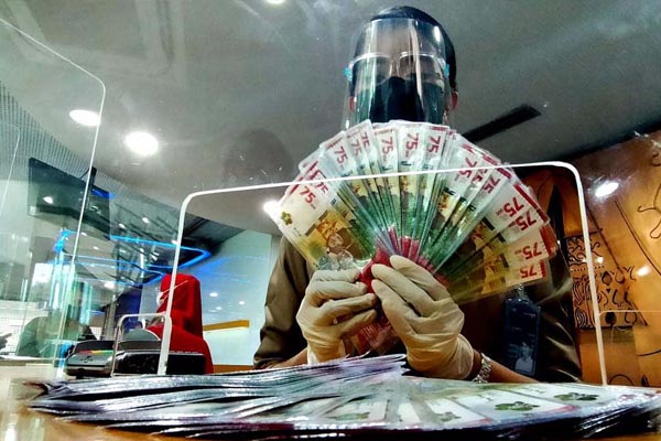 Nasabah PT Bank Tabungan Negara (Persero) Tbk. sedang menghitung uang tunai pecahan Rp75 ribu di Kantor Cabang Bank BTN Jakarta Harmoni, di Jakarta, pekan ini. Bank BTN mengalokasikan likuiditas dana senilai Rp13,4 triliun untuk memenuhi kebutuhan uang tunai nasabah perseroan di masa perayaan Idul Fitri 1442 H selama 10 hari terhitung sejak 8-17 Mei 2021. Untuk melayani kebutuhan perbankan para nasabahnya, beberapa kantor cabang Bank BTN juga tetap beroperasi secara terbatas selama periode Idul Fitri 2021 dengan tetap mengutamakan protokol kesehatan.