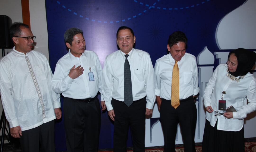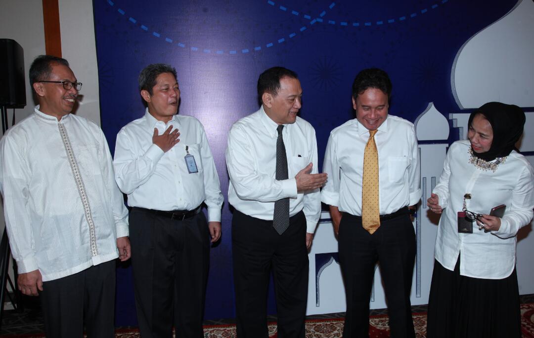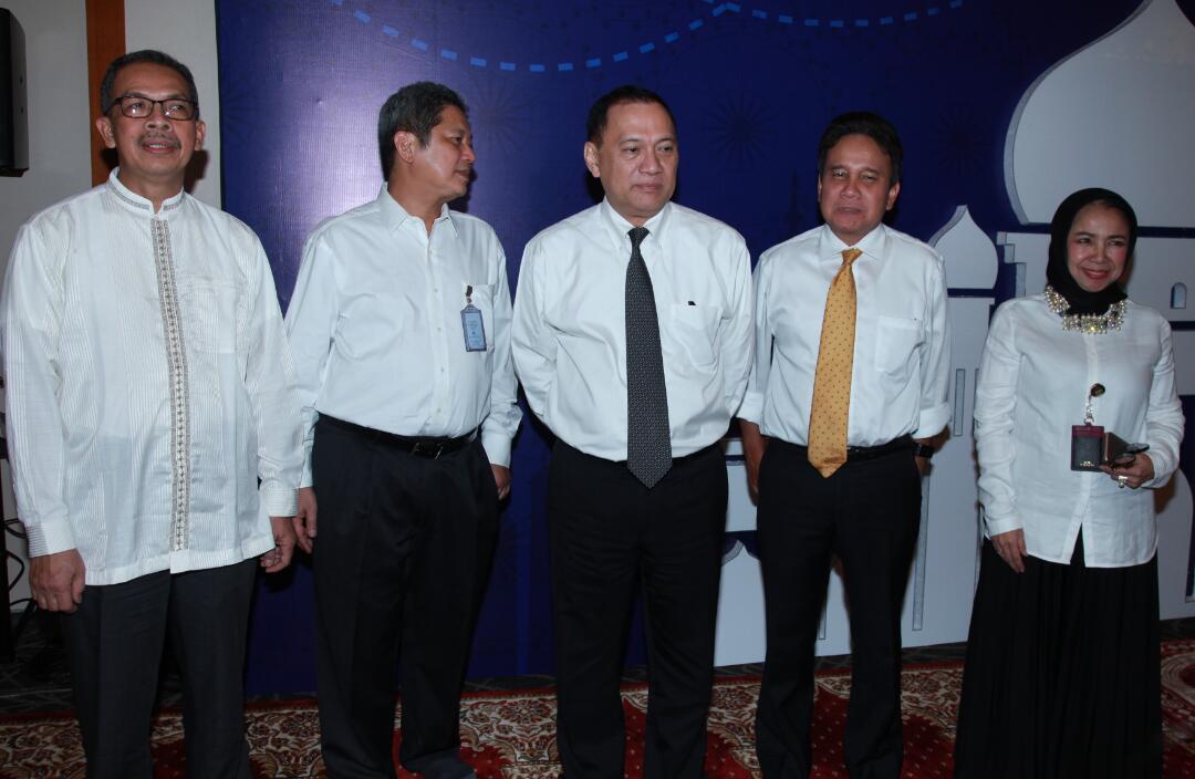 Gubernur Bank Indonesia (BI) Agus Martowardojo (tengah) berbincang dengan Deputi Gubernur Senior BI Mirza Adityaswara (kedua kanan) dan tiga Deputi Gubernur BI Sugeng (kiri), Erwin Rijanto (kedua kiri) dan Rosmaya Hadi (kanan) di sela acara buka puasa bersama media di Bank Indonesia, Jakarta, Senin 29 Mei 2017. Kegiatan itu bertujuan untuk mempererat hubungan antara BI dengan media-media di Indonesia.Untuk kebutuhan di bulan puasa dan Lebaran tahun ini, BI menyiapkan tambahan uang tunai sebesar Rp250 triliun. Saat ini, BI sendiri sudah menyiapkan uang tunai sebesar Rp167 triliun.(Erman Subekti)