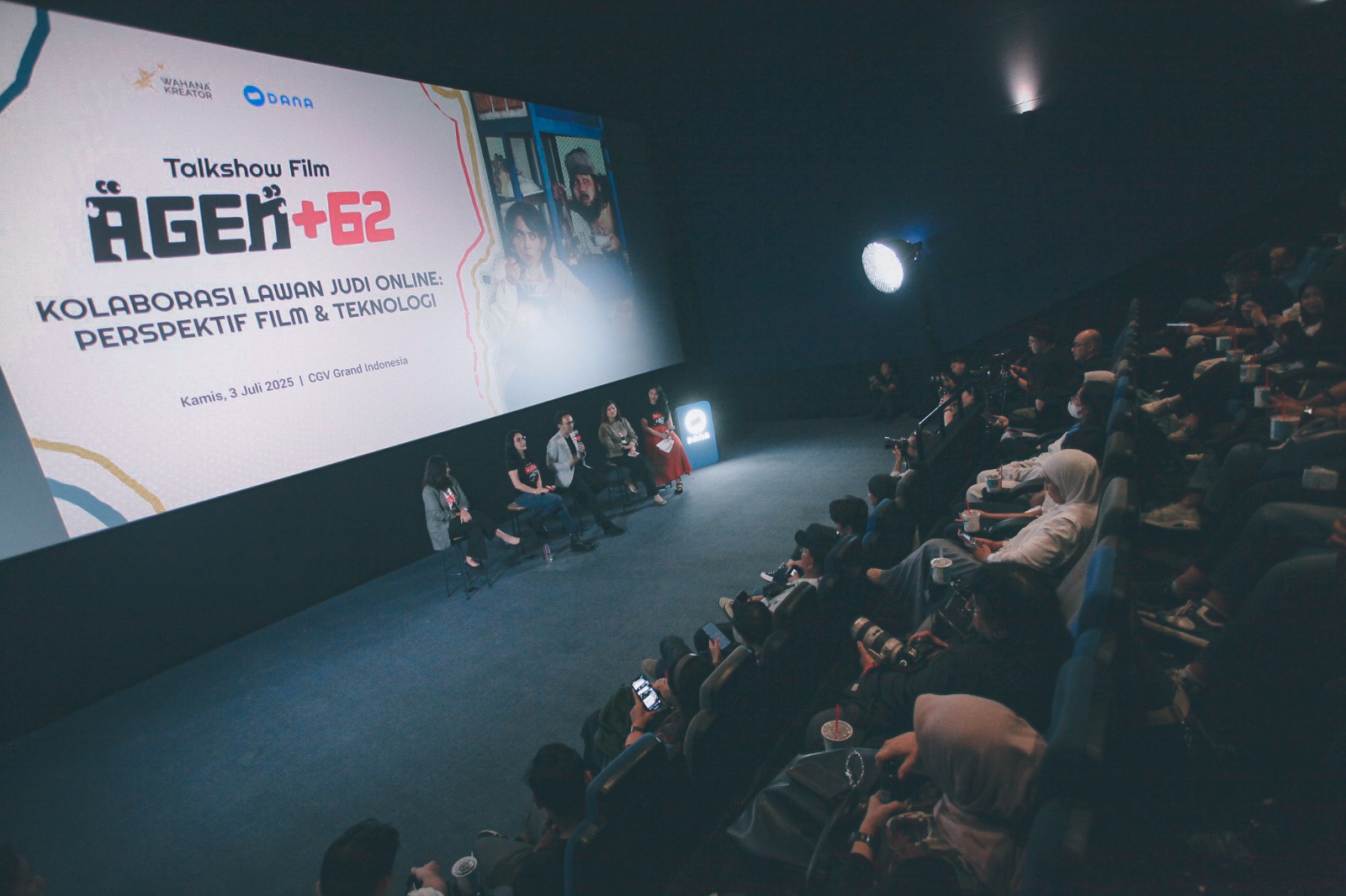 DANA berkolaborasi dengan Wahana Kreator memproduksi film mengangkat kisah dibalik judi online (judol) yang kian marak dan merugikan masyarakat. DANA, melalui film Agen+62, mengajak penonton untuk lebih waspada serta memanfaatkan teknologi Smart Friction untuk menutup celah penipuan dan meningkatkan perlindungan.