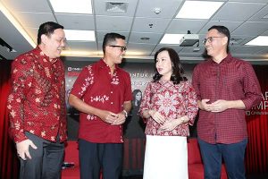 Presiden Direktur CIMB Niaga Lani Darmawan (kedua kiri) bersama Komposer Andi Rianto (kedua kanan), Head of Marketing, Brand and Customer Experience CIMB Niaga Toni Darusman (kiri) dan Direktur Consumer Banking CIMB Niaga Noviady Wahyudi (kanan) usai memberikan keterangan pada media terkait konser Kejar Mimpi, di Jakrta, Rabu, 3 Agustus 2022. CIMB Niaga akan menggelar Konser Kejar Mimpi untuk Indonesia di Plenary Hall, Jakarta Convention Center (JCC) pada Kamis, 18 Agustus 2022. Pagelaran musik yang disajikan dalam format orkestra ini menampilkan kolaborasi komposer terkemuka Andi Rianto bersama Magenta Orchestra dengan sederet seniman inspiratif: Anggun, Maudy Ayunda, Afgan, Rossa, Marcell, Dee Lestari, Sruti Respati, Lyodra, Cut Mini, dan Sandra Dewi. Melalui konser ini, CIMB Niaga memberikan pengalaman terbaik kepada para nasabah sekaligus mendukung karya seni dan industri kreatif di Indonesia agar terus bangkit.