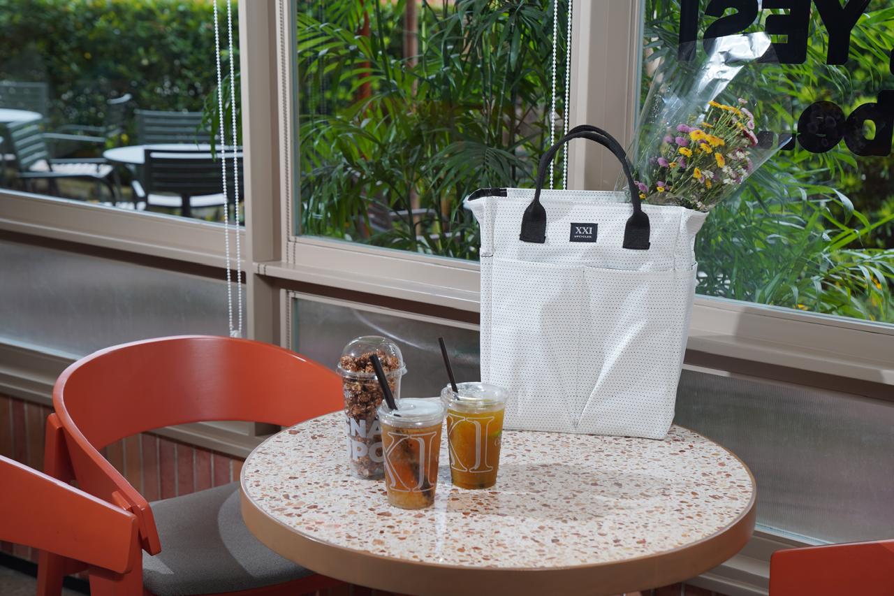 Kali ini, Perseroan memperkenalkan XXI Screen Bag yang merupakan hasil upcycling lebih dari 1.000 meter persegi layar bioskop Cinema XXI yang sudah tidak terpakai lagi.