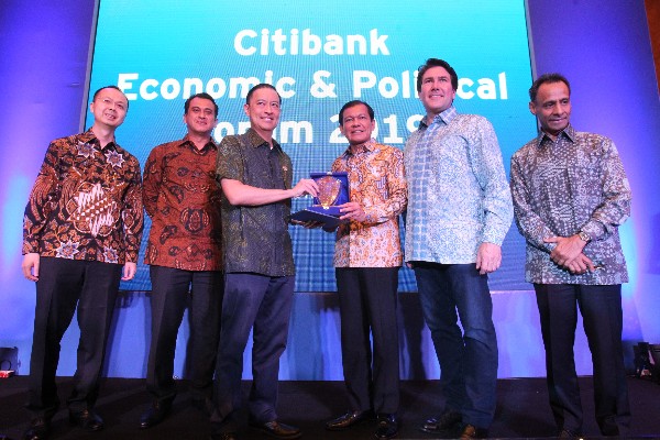 Wit Oemar Head of Global Subsidiaries Group Citi Indonesia, Gioshia Ralie Head of Corporate and Investment Banking Citi Indonesia, Thomas Lembong Kepala BKPM Republik Indonesia, Batara Sianturi CEO Citi Indonesia, Marc Merlino Global Head Citi Global Subsidiaries Group dan Munir Nanji Citi Global Subsidiaries Group Head for Asia Pacific berfoto bersama dalam acara Citi Economi and Political Outlook 2019 di Jakarta, Senin (8/4). Acara yang merupakan agenda tahunan Citi Indonesia ini bertujuan untuk memberikan ulasan dan analisis secara lengkap dan komprehensif mengenai ekonomi dan politik Indonesia serta tren digitalisasi di Indonesia. Melalui acara ini, diharapkan para nasabah korporasi dari Citi Indonesia dapat terbantu dalam menentukan langkah serta strategi bisnis mereka di tahun ini serta tahun mendatang. (*)
