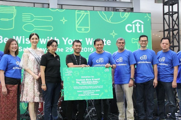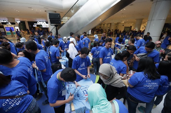 Batara Sianturi, CEO Citi Indonesia (kiri), Elvera N. Makki Director, Country Head of Corporate Affairs Citi Indonesia (tengah) dan Rosa Vivien Ratnawati, Direktur Jenderal Pengelolaan Sampah, Limbah dan Bahan Beracun Berbahaya, Kementerian Lingkungan Hidup dan Kehutanan RI (kanan) membuat tas dari kaos dalam puncak acara Citi Indonesia Global Community Day 2019. Global Community Day (GCD) tahun ini merupakan penyelenggaraan yang ke-14 dengan mengusung tema “Be Wise with Your Waste” berkaitan erat dengan UN Sustainable Development Goals (SDGs) ke-13 yaitu Climate Action. Tema “Be Wise with Your Waste” diwujudkan dengan melakukan serangkaian kegiatan edukasi dan inisiatif yang dilaksanakan dengan mengajak para karyawan Citi sebagai Green Champion. (*)