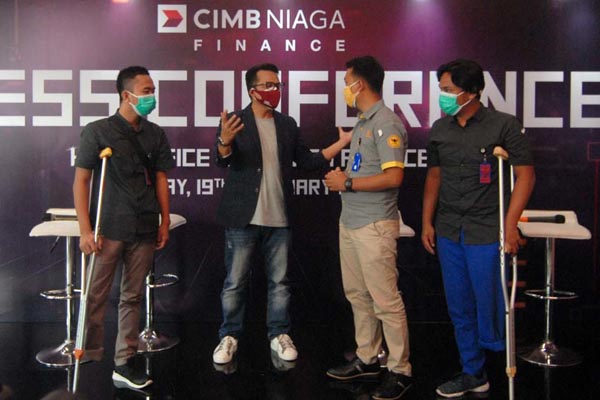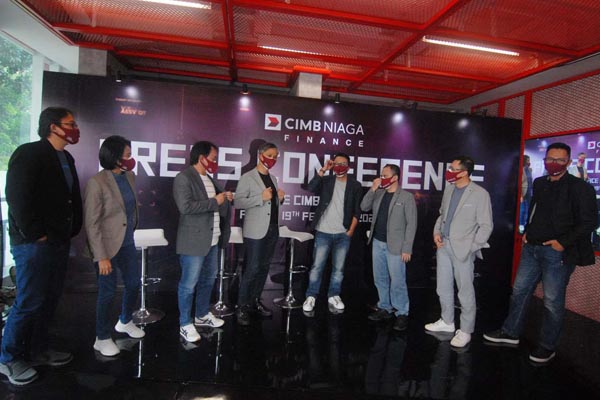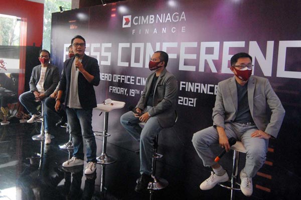 Presiden Direktur CIMB Niaga Finance Ristiawan Suherman (tengah) berbincang dengan Direktur Collection & Recovery Danis V Bimawan (dari kiri), Direktur Credit & Risk Antonius Herdaru, Direktur Finance & Strategy Imron Rosyadi dan Direktur Sales & Acquisition Kurniawan Kartawinata usai meresmikan Kantor Pusat PT CIMB Niaga Auto Finance (CIMB Niaga Finance atau CNAF) di Bintaro, Tangerang Selatan, Banten, Jumat, 19 Februari 2021. Memasuki tahun 2021 CNAF melakukan terobosan besar diantaranya meresmikan kantor pusat yang terintegrasi secara digital, transformasi digital-tandatangan digital, dan meluncurkan program Sahabat CNAF serta Sahabat Binaan CNAF-pemberdayaan disabilitas mengembangkan usaha pembuatan sabun dan hand sanitizer.