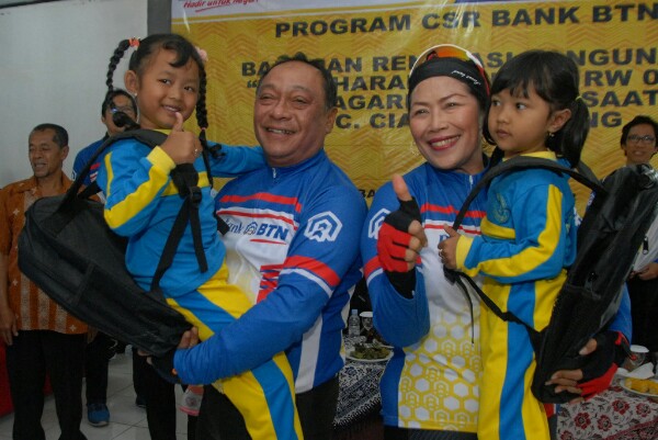 Direktur Utama Bank BTN Maryono Bersama jajaran direksi lainnya memberikan CSR disela sepedahan. PT Bank Tabungan Negara (Persero) Tbk memberikan bantuan CSR (corporate social responsibility) dalam kegiatan Jambore Sepeda BTN di wilayah Ciater Minggu (25/2/2018). Kegiatan yg masih menjadi rangkaian kegiatan HUT ke-68 Bank BTN ini diikuti oleh hampir 300 peserta penggemar sepeda BTN yang tergabung dalam BCC (batara cycling community) yang sarat dengan kegiatan sosial antara lain bantuan sarana pendidikan kepada Madrasah Diniyah Takmaliyah Awaliyah untuk pembangunan Taman Bacaan Sekolah sinergi dengan Balai Pustaka serta renovasi ruang perpustakaan dan bantuan sarana penunjang pendidikan. Bantuan juga diberikan dalam bentuk renovasi sarana dan prasarana sekolah kepada PAUD Harapan Bunda berupa renovasi ruang kelas, renovasi toilet serta pemasangan keramik. (*)