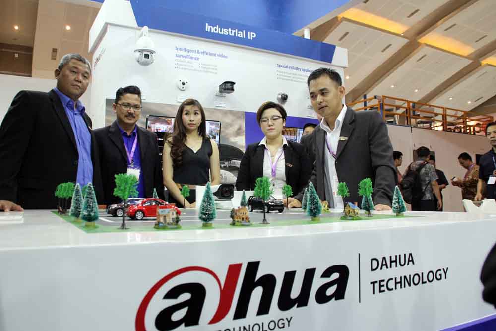 (Kiri-kanan) Vice President Dahua Technology Ari Purnomo,Presle Manager Iqbal,Marketing Manager Juan Andreas,Project Manager Herry Tjhin,Country Manager Kris Wu berbincang di maket “Dahua Traffic Enforcement System” pada pameran The ASEAN’s leading international di JIExpo Jakarta,Rabu 17 Mei 2017.Dahua Technology sebagai penyedia solusi video surveillance & Security System terbesar nomor 2 di dunia kembali menunjukan eksistensinya dalam bidang keamanan di ajang kegiatan pameran smart home city yang merupakan bagian dari pameran The ASEAN’s leading international yang berlangsung 17 – 19 Mei 2017, di Jakarta International Expo, Kemayoran.Salah satu teknologi unggulan yang ditawarkan Dahua Technology untuk menjawab permasalahan pelanggaran lalu lintas di kota besar seperti Jakarta untuk menunjang smart city adalah teknologi “Dahua Traffic Enforcement System”. Teknologi ini berfungsi untuk mengenali pelanggaran yang terjadi di jalan raya.(Budi Urtadi)