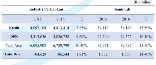 Jakarta–PT BPD Jawa Barat dan Banten Tbk (BJB) mencetak laba bersih sebesar Rp1,57 triliun pada 2016, meningkat 14,4 persen dibanding perolehan tahun sebelumnya sebesar Rp1,37 triliun. Kenaikan laba perseroan jauh di atas industri yang cuma 1,83 persen pada tahun lalu.