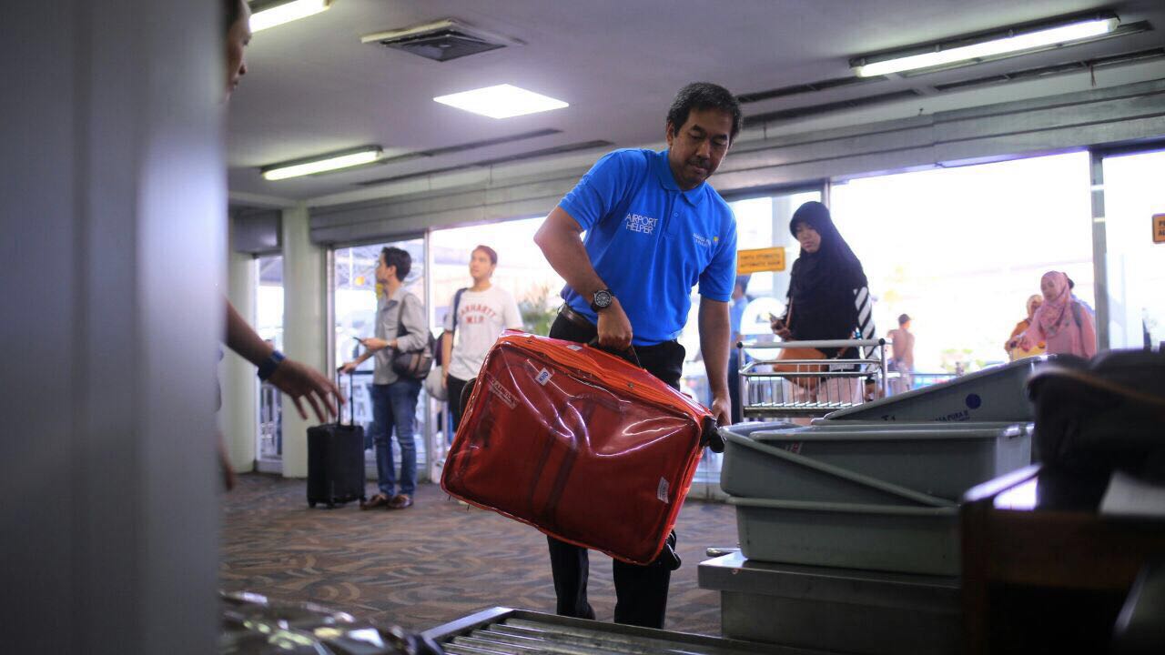 Direktur Utama Angkasa Pura II, M. Awaluddin turun membantu penumpang yang mengambil Bagasi di Terminal III, Jumat 8 September 2017.