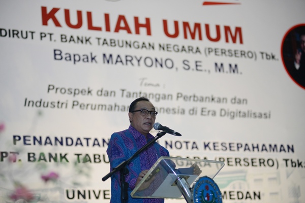 Maryono mengajak mahasiswa Universitas Negeri Medan sebagai generasi melenial untuk ikut mengambil peran dalam menghadapi tantangan yang dihadapi oleh perbankan Indonesia di masa depan. Era digitalisasi perbankan di pasar global butuh peran serta anak muda dan mahasiswa untuk dapat bergabung mengambil peran agar bersama kaum milenial perbankan dapat memenangkan persaingan. Ajakan Maryono ini disampaikan dalam paparan pada saat memberikan kuliah di depan ribuan mahasiswa Universitas Negeri Medan. (*)