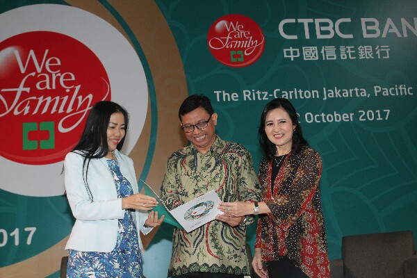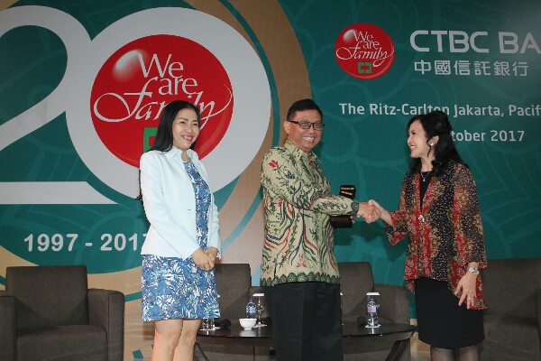 (Kiri ke Kanan) Tantina Repi (Compliance Director PT Bank CTBC Indonesia), Imansyah (Deputi Komisioner Pengaturan dan Pengawasan Terintegrasi Otoritas Jasa Keuangan) dan Liliana Tanadi (Direktur Institutional Banking CTBCI) berfoto bersama sesaat sebelum dimulainya Diskusi 2018 Economic Outlook – Global Opportunities & Domestic Challenges di Ritz Carlton Pacific Place (12/10). Diskusi tersebut diselenggarakan sebagai salah satu rangkaian perayaan 20th Anniversary PT Bank CTBC Indonesia. (*)