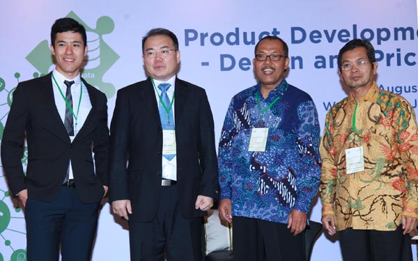 PT Maskapai Reasuransi Indonesia Tbk (Marein), Sutadi (ketiga kanan) tengah berbincang dengan Head of Pricing SCOR Global Life, Ian Cheng, Senior Marketing Actuary SCOR Global Life, Noelle Lee, Head of SEA and India, Life and Health, Louis Heng, Aktuaris Marein Kasir Iskandar dan Senior Pricing Actuary SCOR Global Life Leo Liu (kiri ke kanan) disela acara joint seminar sehari tentang asuransi dengan Tema “Product Development – Design and Pricing” yang diadakan di Jakarta Rabu, 30 Agustus 2017.