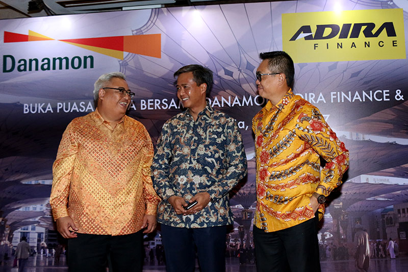 Direktur Danamon Syariah, Herry Hykmanto menyerahkan donasi sebesar Rp 100 juta kepada lembaga zakat di Jakarta, 31 Mei 2017. Penyerahan ini diadaan bersamaan dengan diskusi “Serba Serbi Umrah di Industri Layanan Keuangan” hasil kerjasama dengan Adira Finance dan Adira Insurance. (Himawan Nugraha)