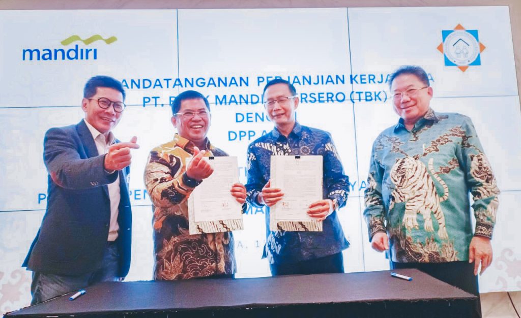 Penandatanganan perjanjian Kerjasama antara Bank Mandiri dengan DPP Asosiasi Pengembang Perumahan dan Permukiman Seluruh Indonesia (DPP APERSI), untuk mempermudah akses kepemilikan rumah bagi nasabah Bank Mandiri, yang dilakukan di Jakarta.Direktur Jaringan & Retail Banking Bank Mandiri Aquarius Rudianto memberikan sambutan saat acara penandatanganan perjanjian Kerjasama dengan DPP Asosiasi Pengembang Perumahan dan Permukiman Seluruh Indonesia (DPP APERSI), di Jakarta.SEVP Micro & Consumer Finance Bank Mandiri Saptari, Ketua Umum Asosiasi Pengembang Perumahan dan Permukiman Seluruh Indonesia (APERSI) Junaidi Abdillah, Direktur Jaringan & Retail Banking Bank Mandiri Aquarius Rudianto dan Sekjen APERSI Daniel Djumali (kiri ke kanan) sedang foto bersama usai penandatanganan perjanjian kerjasama untuk mempermudah akses kepemilikan rumah bagi nasabah Bank Mandiri, yang diadakan di Jakarta, Jumat 15 Maret 2024.
