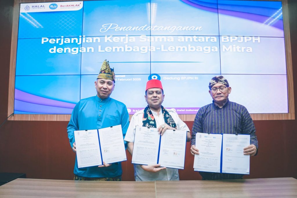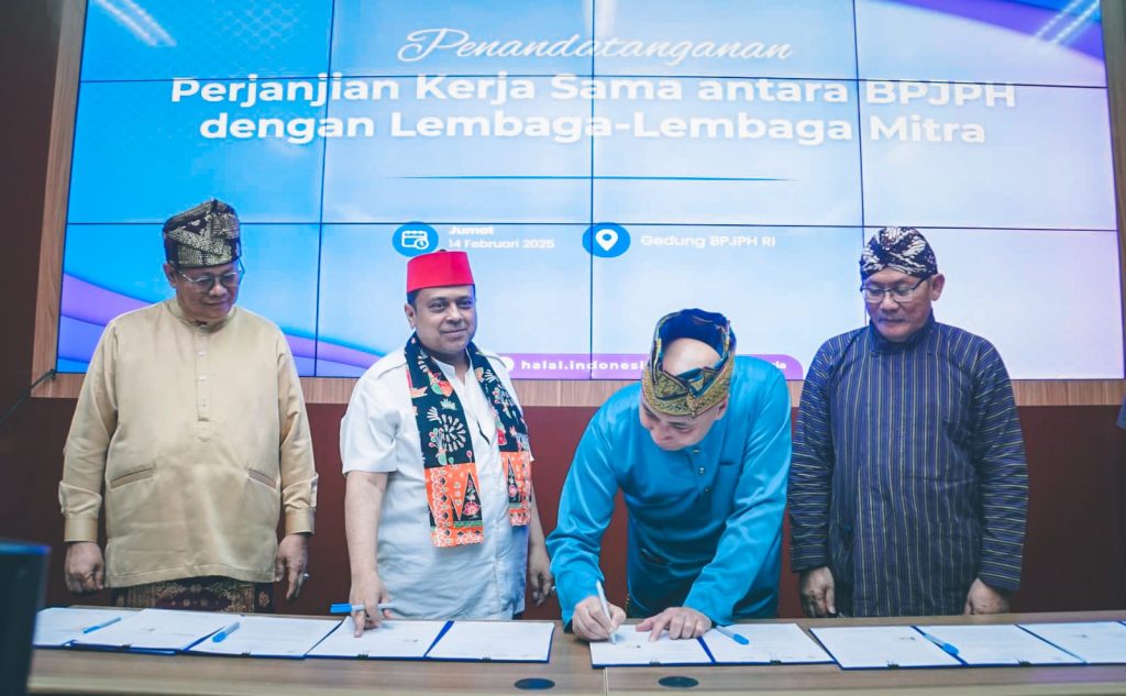 BSI lakukan perjanjian kerja sama dengan Badan Penyelenggara Jaminan Produk Halal (BPJPH), di Jakarta, Jumat 14 Februari 2025/Foto : Erman Subekti