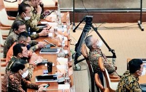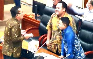 Direktur Utama PT Bank Tabungan Negara (Persero) Tbk. Haru Koesmahargyo berbincang dengan Wakil Ketua Komisi VI DPR Muhammad Haekal dan Anggota Komisi VI DPR Abdul Hakim usai Rapat Kerja Komisi VI DPR RI dengan Kementerian BUMN, di Jakarta, Senin, 4 Juli 2022. Dalam rapat tersebut, Komisi VI DPR RI menyetujui usulan Kementerian BUMN mengenai Penyertaan Modal Negara (PMN) tahun 2023 dan inisiatif tambahan modal sejumlah BUMN melalui aksi korporasi rights issue tahun 2022. Adapun, Bank BTN termasuk salah satu BUMN yang mengantongi restu Komisi VI untuk memperoleh PMN tahun anggaran 2022 senilai Rp2,98 triliun.