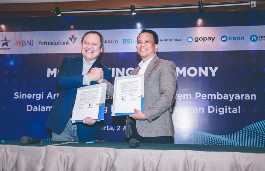 Direktur Utama Artajasa Armand Hermawan bersama Direktur Utama Bank BPD Bali I Nyoman Sudharma disela acara penandatanganan MOU Artajasa bersama pelaku sistem pembayaran dalam mendukung Inovasi Pembayaran Digital, yang dilakukan Jakarta.Group Head Digital Strategy & Product Bank Syariah Indonesia (BSI) Riko Wardhana, Division Head Digital Business Bank Permata Riga Sunkara, Direktur DANA Darrick Rochili, Direktur GOPAY Budi Gandasoebrata, Direktur Utama ARTAJASA Armand Hermawan, Direktur Utama Bank BPD Bali I Nyoman Sudharma, Head of Digital Banking, Branchless & Partnership Bank CIMB NIAGA Lusiana Saleh, Direktur NETZME Vicky Ganda Saputra, Department Head Pengembangan Produk Payment BANK BNI Prabowo Adi Sambodo dan Presiden Direktur AINO Hastono Bayu Trisnanto (kiri ke kanan) berbincang seusai Penandatanganan Memorandum of Understanding (MOU) antara Artajasa dengan para pelaku sistem pembayaran yang berlangsung di Jakarta, Jum’at 2 Agustus 2024.