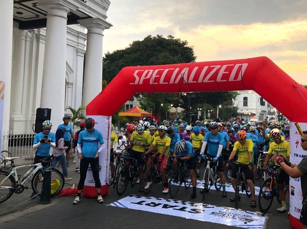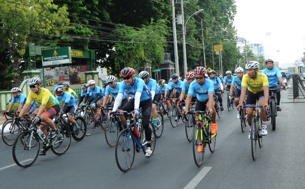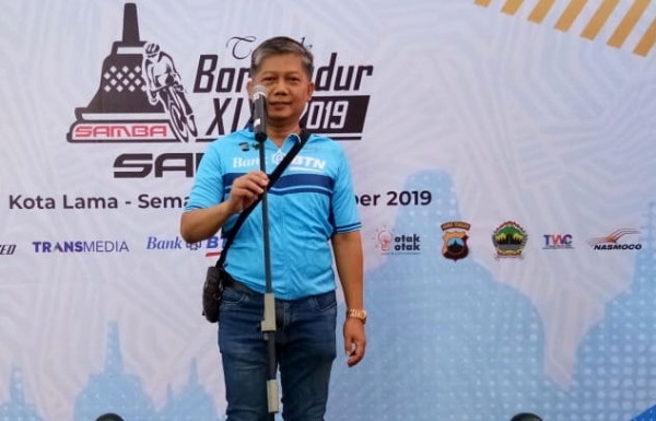 DRM Suport Kantor Wilayah 6 Bank BTN Agus Fajarianto melepas bendera start etape pertama olah raga sepeda BTN Tour de Borobudur di Semarang, Sabtu (2/11). Kegiatan sepeda ini diikuti oleh ratusan peserta yang berasal dari Indonesia dan negara asing. Adapun etape pertama adalah Semarang menuju Solo dan dilanjutkan pada etape kedua yang dilaksanakan pada Minggu (3/11) tujuan Solo menuju Candi Borobudur. BTN Tour de Borobudur merupakan kegiatan tahunan yang diselenggarakan untuk memberikan ruang penggemar olah raga sepeda sekaligus dalam rangka mendukung pengembangan destinasi pariwisata khususnya di wilayah Jawa Tengah. (*)