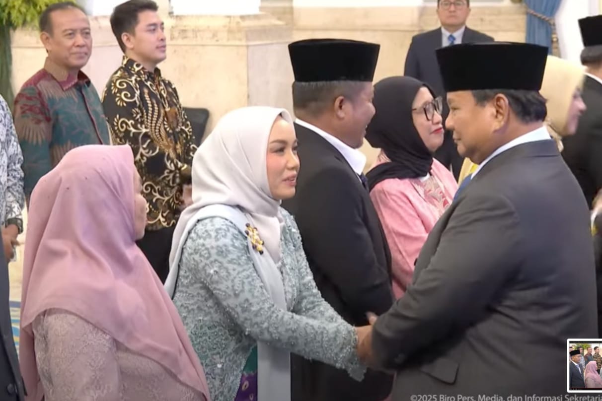 Selepas pelantikan, Farida yang datang didampingi ibunya tampak semringah saat bersalaman dengan Presiden Prabowo. Tak lupa, kepada Kepala Negara, ia mengenalkan sang ibunda yang berdiri di sampingnya.