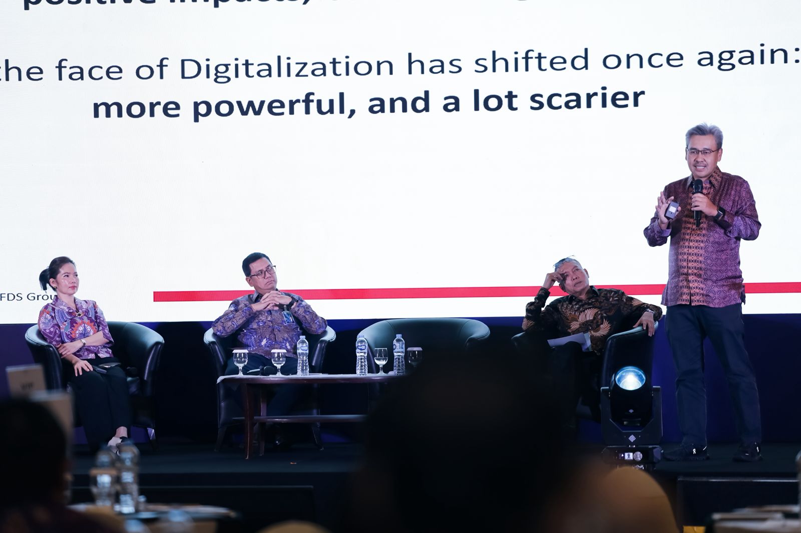 “Dulu kita bicara institusi keuangan, sekarang kita bicara ekosistem. Semua sudah terhubung, seperti bank, sekuritas, asuransi, dan layanan lain. Konektivitas ini membawa manfaat besar, tapi juga membuka risiko yang harus kita kelola bersama,” ujarnya, dalam Forum bertajuk “Negative Impact of Digitalization: New Security Threats” yang digelar Infobank Media Group bersama FDS PAC Group dan APEI, di JS Luwansa Hotel, Kuningan, Jakarta, Kamis, 20 November 2025.