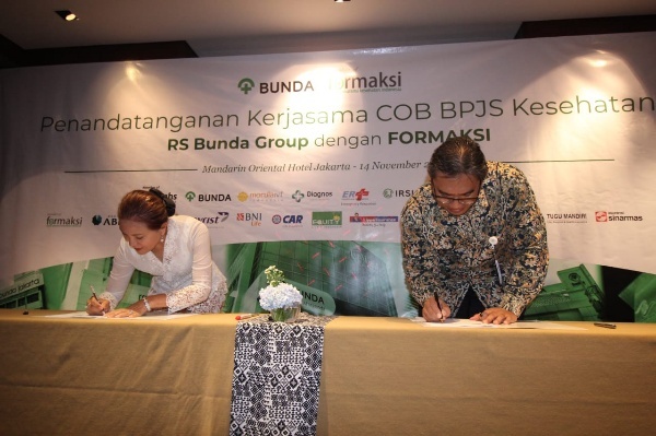 Perusahaan Asuransi yang tergabung dalam Forum Asuransi Kesehatan Indonesia (FORMAKSI) memperluas jaringan kerja sama dengan Rumah Sakit Bunda Group (RSU Bunda Jakarta,RSU Bunda Margonda, RS Citra BMC) untuk layanan cashless pasien Coordination of Benefit (CoB) BPJS Kesehatan.11 perusahaan asuransi anggota FORMAKSI terus berupaya memberikan layanan lebih baik untuk peserta polis Asuransi Kesehatan dari Perusahaan Anggota,yang menjadi concern utama. (*)