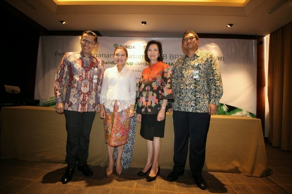 (Kiri-kanan) Komisaris Utama BMHS (Bundamedik Healthcare System) Dr. Ivan Rizal Sini, MD, FRANSCOG, GDRM, SpOG, Direktur Eksekutif FORMAKSI Dumasi MM Samosir, Bendahara FORMAKSI Linda Julianan J. L. Delhaye dan Managing Director PT. Bundamedik Nurhadi Yudiyantho, SE, Ak berbincang sebelum penandatangan kerja sama di Jakarta (14/11).