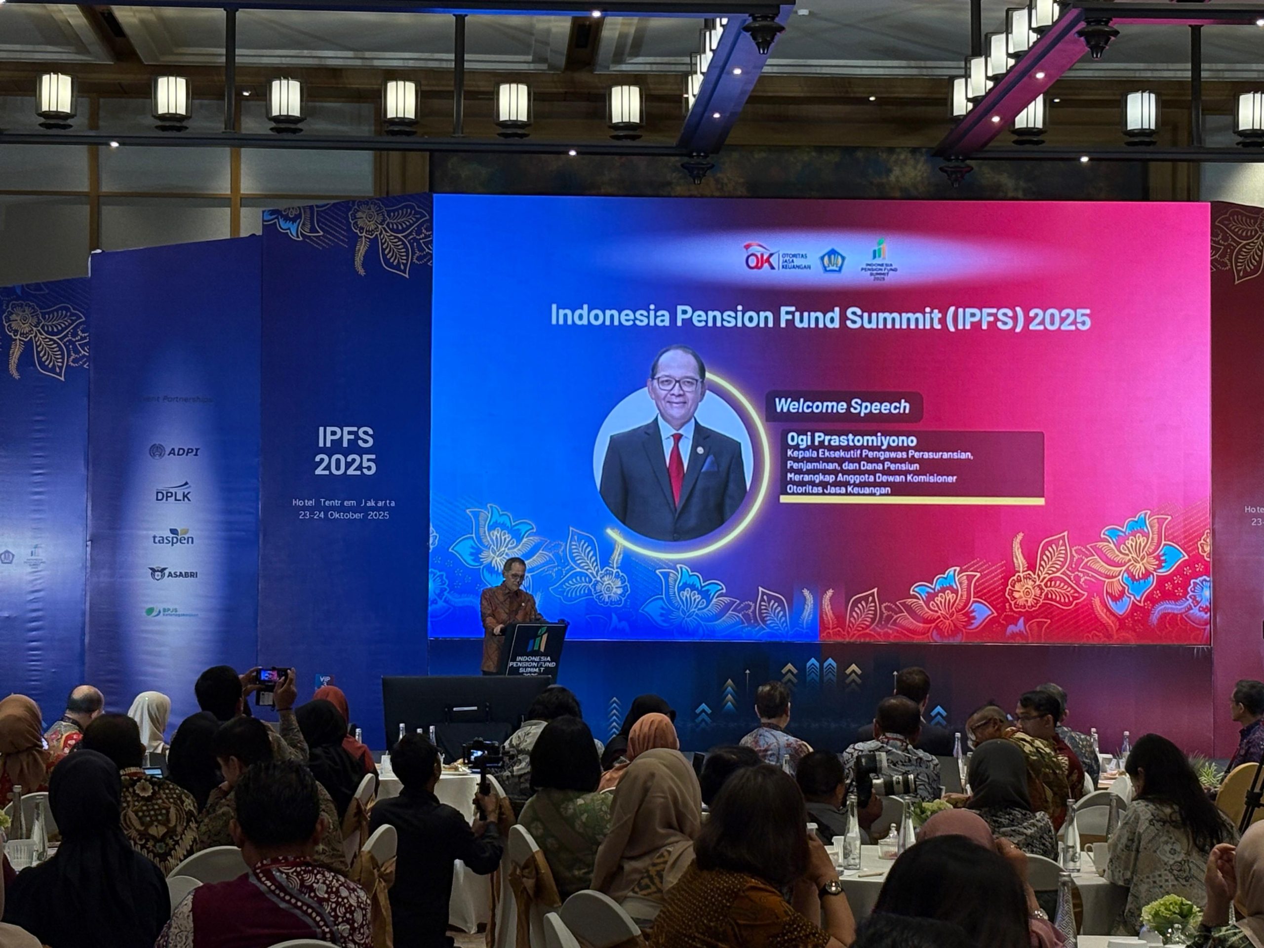 Kepala Eksekutif Pengawas Perasuransian, Penjaminan, dan Dana Pensiun OJK Ogi Prastomiyono, dalam acara Indonesia Pension Fund Summit (IPFS) 2025, di Tangerang Selatan, Kamis, 23 Oktober 2025