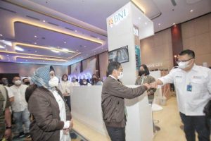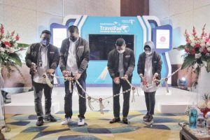 Direktur Dyandra Promosindo Michael Bayu A. Sumarijanto, Direktur Utama Garuda Indonesia Irfan Setiaputra, Menparekraf Sandiaga Salahuddin Uno, dan Wakil Direktur Utama BNI Adi Sulistyowati (kiri ke kanan) memamerkan mock up Kartu Kredit dan Kartu Debit Co-Brand BNI Garuda di Opening Ceremony Garuda Indonesia Travel Fair (GATF) di Jakarta, Jum’at 10 Desember 2021. BNI turut memeriahkan GATF tahun ini melalui Diskon/Cashback hingga Rp1,75 juta, Cicilan 0% hingga 12 bulan, Free Voucher hingga Rp500rb dengan BNI Reward Points serta program tambahan lainnya khusus untuk Kartu Co-Brand BNI Garuda.