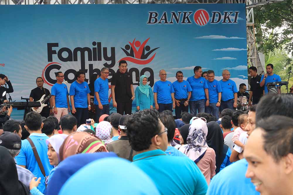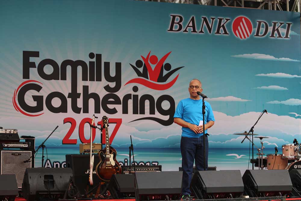Direktur Utama Bank DKI, Kresno Sediarsi (kiri) menyapa keluarga karyawan dalam acara Family Gathering PT Bank DKI ,dengan dihibur oleh penyanyi Tulus,dalam rangkaian HUT ke 56 Bank DKI yang dilaksanakan di Taman Lumba-Lumba Ancol, Jakarta,Minggu 14 Mei 2017.Bank DKI Per Maret 2017, total aset Bank DKI mencapai Rp 45,92 triliun, tumbuh 21,86% dibandingkan periode yang sama tahun sebelumnya yang sebesar Rp 37,68 triliun. Sedangkan laba bersih Bank DKI per Maret 2017 tercatat sebesar Rp 161 miliar.(*)