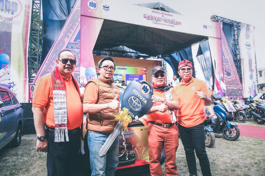 Suasana saat acara Gebyar Undian Pemenang Program Tabungan Pundi BPR NBP Grup yang diadakan di di Siborongborong, Tapanuli Utara, Sumatera Utara.Presiden Direktur Holding PT Nusantara Bona Pasogit, Hendi Apriliyanto tengah memberikan sambutan saat acara Gebyar Undian Pemenang Program Tabungan Pundi BPR NBP Grup.Presiden Direktur Holding PT Nusantara Bona Pasogit, Hendi Apriliyanto (kanan kedua) simbolis menyerahkan mock up kunci kendaraan kepada pemenang hadiah utama Program Tabungan Pundi BPR NBP, disaksikan Direktur Holding PT Nusantara Bona Pasogit Chariansyah (kiri) dan Direktur Holding PT Nusantara Bona Pasogit Magus Sitindaon (kanan), saat acara Gebyar undian Tabungan Pundi, di Siborongborong, Tapanuli Utara, Sumatera Utara, Kamis 18 Juli 2024.