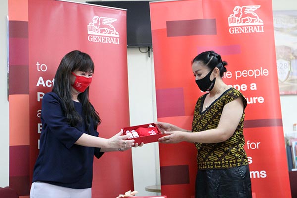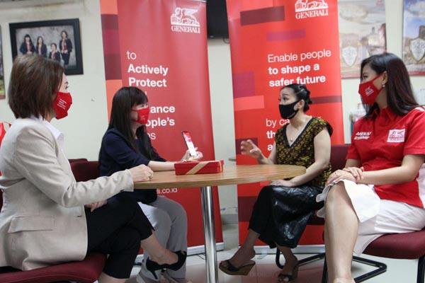 Direktur PT Asuransi Jiwa Generali Indonesia Jutany Japit (kedua kiri) didampingi perwakilan agen Iriany (kiri) dan Inneke Agustina (kanan) memberikan penjelasan mengenai pengajuan klaim secara online kepada nasabah Windy disela-sela pembayaran klaim kesehatan dan penyakit kritis sebesar Rp 3,6 miliar di Tangerang, Banten, Rabu 27 Mei 2020. Generali Indonesia terus memenuhi komitmennya untuk mendampingi nasabah di setiap tahap kehidupan, termasuk dimasa-masa sulit ketika nasabah mengalami musibah sakit.