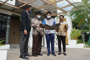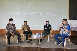 Business Development Head Goldland Group Wilhelmus Marvin, Head Sales Heritage Residence at Puri11, Ronny Wuisan, Direktur Utama Magran Living Dennis Rahardja dan Country Comercial Manager PT Kohler Indonesia Ferry Tanumihardja (kiri ke kanan) tengah berbincang saat perkenalan hunian baru, di Tangerang, Banten, Rabu 8 Desember 2021. Goldland Hadirkan Heritage Residence at Puri 11, Hunian Premium dengan Arsitek Revolusioner di Karang Tengah, Kota Tangerang dengan segmen pasar keluarga muda. Goldland Group menyediakan cara bayar yang sangat mudah, mulai dari pembelian cash, cicilan ke developer hingga 120 bulan, dan KPR yang didukung 11 Bank besar di Indonesia yaitu, OCBC NISP, UOB, BCA, Mandiri, Permata, BNI, BRI, CCB, BTN dan Bank Syariah Indonesia.
