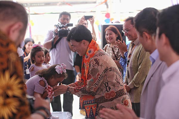 CEO Hanwha Life Insurance Indonesia David Yeom (kiri) bersama Asisten Administrasi dan Kesejahteraan Rakyat Kota Administrasi Jakarta Pusat, Mohamad Fahmi dan National Director Wahana Visi Indonesia, Doseba Tua Sinay (kanan) dalam acara forum diskusi bersama di RPTRA Anggrek Rawasari, Jakarta, Jumat, 29 November 2019. PT Hanwha Life Insurance Indonesia (Hanwha Life), salah satu perusahaan asuransi jiwa terbesar asal Korea mendukung aktivitas di ruang publik terbuka. Hal ini disebabkan aktivitas di ruang publik terbuka dapat meningkatkan kualitas tumbuh kembang anak, sekaligus memiliki beragam manfaat positif dalam kehidupan keluarga.