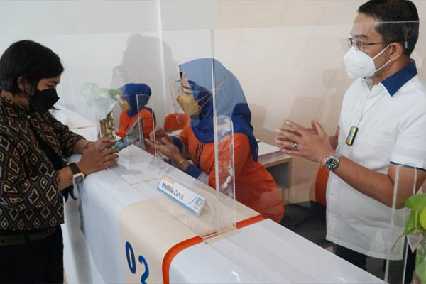 Chief Operation Officer Astra Credit Companies (ACC) Ezar Kumendong (kedua kiri) didampingi Costumer Relation Vivi Elfira (kedua kanan) menyapa nasabah yang tengah mendapatkan layanan di Kantor ACC Kebon Jeruk, Jakarta, Jumat, 3 September 2021. Menyambut Hari Pelanggan Nasional 2021, ACC memberikan apresiasi bagi pelanggan setianya. Diantaranya ACC mengadakan program Diskon Denda 50% bagi pelanggan yang membayar lunas denda selama 1-30 September, serta Cashback Astrapay Rp50.000 pada periode 1-15 September. Selain itu, Tepat di Hari Pelanggan Nasional tanggal 4 September 2021, ACC secara serentak melakukan penyerahan hadiah Undian Pelanggan Berseri edisi Kejutan Ultah ACC ke-39 di seluruh cabang.