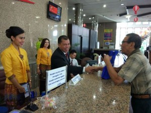 Salah satu kegiatan yang dilakukan oleh Kantor Cabang Bank BTN Karawang dalam rangka menyambut Hari Pelanggan Nasional yang jatuh pada tanggal 4 September 2017. Kepala Cabang Bank BTN Karawang, Agus Rio langsung melayani dan berdialog dengan salah satu nasabahnya bersama petugas Teller.