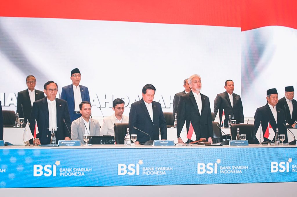 PT Bank Syariah Indonesia Tbk (BSI), menggelar Rapat Umum Pemegang Saham Tahunan (RUPST) Tahun Buku 2023, di Jakarta, Jum’at 17 Mei 2024.PT Bank Syariah Indonesia Tbk (BSI), menggelar Rapat Umum Pemegang Saham Tahunan (RUPST) Tahun Buku 2023, di Jakarta, Jum’at 17 Mei 2024.Direktur Utama PT Bank Syariah Indonesia Tbk (BSI), Hery Gunardi (dua dari kiri) didampingi Wakil Direktur Utama BSI Bob Tyasika Ananta (paling kiri), Wakil Komisaris Utama/Independen BSI Adiwarman Azwar Karim (tiga dari kiri) dan Ketua Dewan Pengawas Syariah BSI Prof. Dr. KH. Hasanudin (paling kanan) berbincang bersama sesaat sebelum pelaksanaan Rapat Umum Pemegang Saham Tahunan Tahun Buku 2023, di Jakarta, Jum’at 17 Mei 2024.