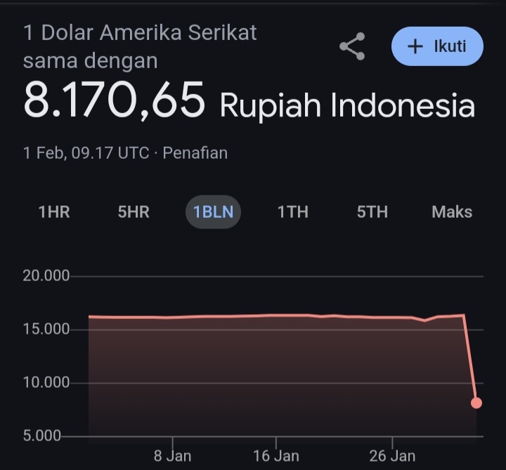 Netizen Tanah Air pun dibuat gaduh soal nilai tukar rupiah tersebut. Banyak yang menduga Google mengalami gangguan atau eror dalam mengonversi mata uang, khususnya antara mata uang dolar dan rupiah.