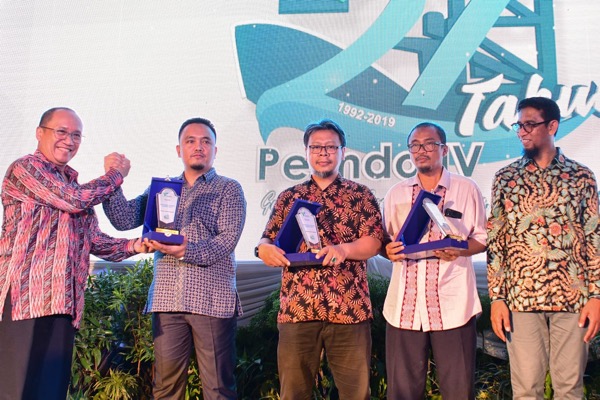 Direktur Utama Pelindo 4 Farid Padang didampingi Komisaris Utama Pelindo 4 Agus Purwoto beserta Jajaran Direksi Pelindo 4 foto bersama usai menyerahkan penghargaan kepada media di Makassar, Sabtu (21/12/2019). Puncak peringatan Hari Ulang Tahun ke-27, PT Pelabuhan Indonesia 4 (persero) dimeriahkan dengan pemberian penghargaan kepada loyal customer yang telah berkontribusi positif menyumbang pertumbuhan serta media yang terus memberitakan kemajuan perseroan. (*)