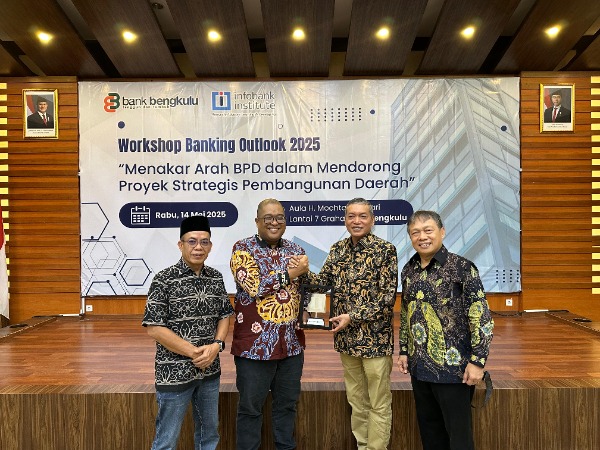 Bengkulu – Infobank Institute Bersama Bank Bengkulu Gelar Workshop Banking Outlook 2025″ dengan Menghadirkan Ekonom Senior Ryan Kiryanto dengan Tema Macroeconomic Analysis kepada Pimpinan Bank Bengkulu, di Kantor Pusat Bank Bengkulu, 14 Mei 2025, tampak Iswahyudi, Plt Dirut Bank Bengkulu bersama Ryan Kiryanto.