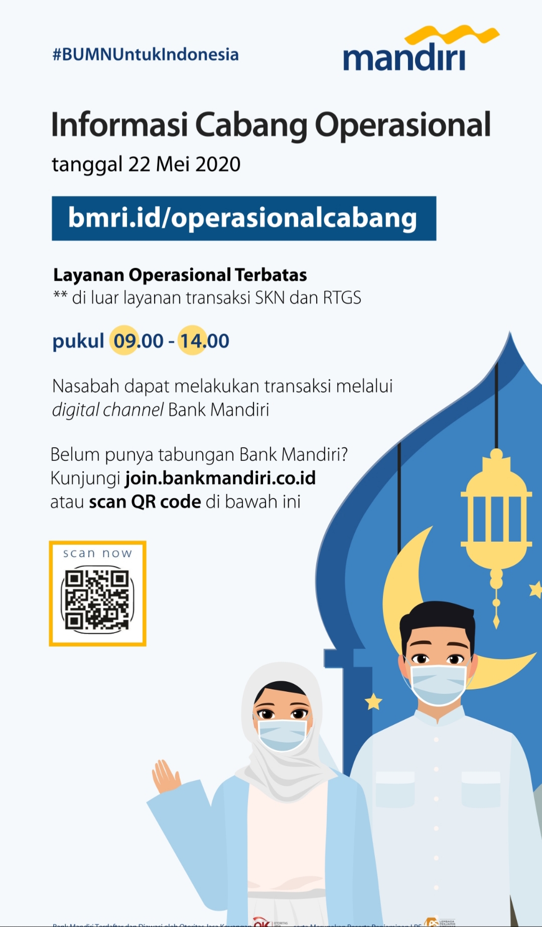 Inilah daftar Cabang Operasional Kas Terbatas Bank Mandiri pada Jumat, 22 Mei 2020, bisa diakses di: http://bmri.id/operasionalcabang