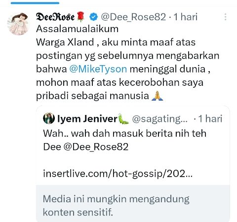 Kabar ini bermula dari cuitan dari akun @Dee_Rose28. Akun tersebut memunculkan hoaks Mike Tyson meninggal disertai dengan video.