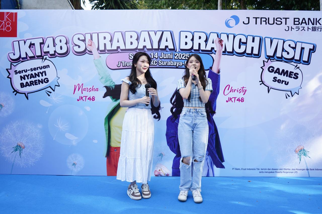 Dalam acara JKT48 Surabaya Branch Visit, Christy dan Marsha menyapa langsung para fansnya di J Trust Bank Kantor Cabang (KC) Darmo, Surabaya.