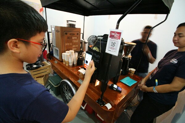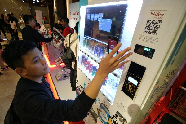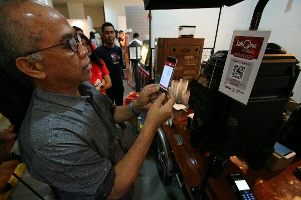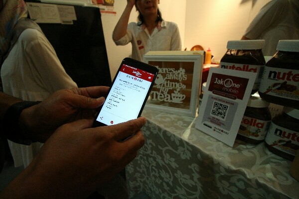 Direktur Utama Bank DKI Kresno Sediarsi dan Istri.menggunakan JakOne Mobile Bank DKI di salah satu gerai kopi disela sela acara festival seni Alpus Incredibles 6 di Jakarta (28/10). Bank DKI terus mendorong penerapan transaksi non tunai di DKI Jakarta. Per Oktober 2017, pengguna JakOne Mobile telah mencapai 10 ribu pengguna. (*)