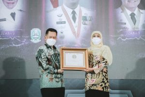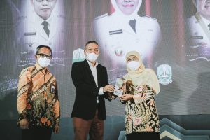 Gubernur Jawa Timur Khofifah Indar Parawansa, sedang memberikan speech di Jakarta, 14 April 2022. Provinsi Jawa Timur berhasil meraih 3 penghargaan dalam ajang Anugerah Adinata Syariah 2022 yaitu Juara 1 Kategori Keuangan Mikro Syariah, juara 1 Kategori Pendidikan Ekonomi Syariah dan juara 2 Kategori Pemberdayaan Ekonomi Pesantren.