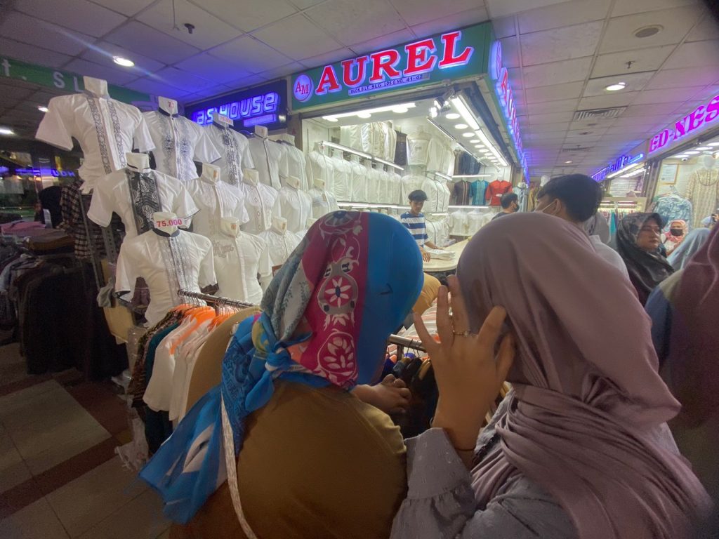 Hal senada juga terjadi di toko lainnya. Banyak pengunjung menghampir toko-toko pakaian muslim untuk pria, wanita dan anak. Situasi semakin menarik manakala para pedagang bersahut-sahutan mengeluarkan jargon unik mereka.